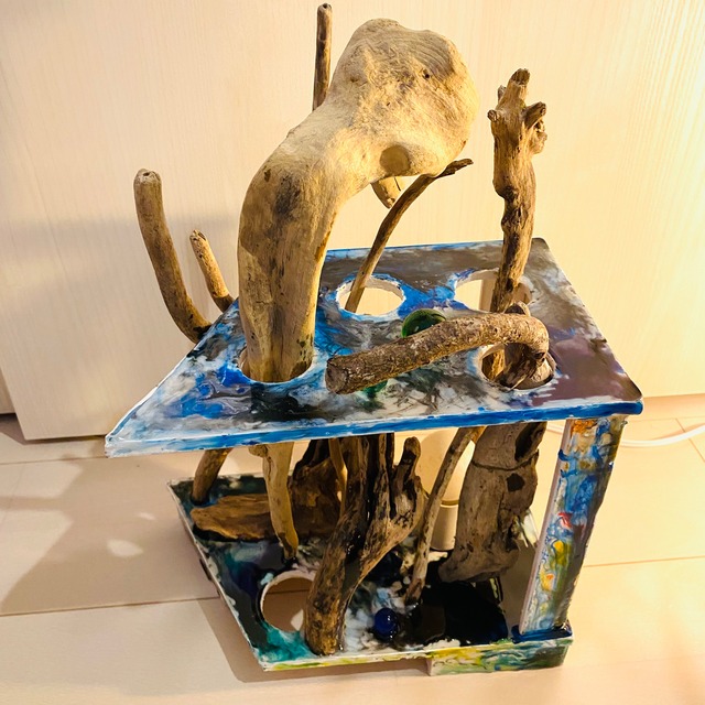 世界で一つだけの流木 世界で一つだけのレジンデザイン それらを組み合わせた 流木インテリア照明 店舗や事務所のオブジェとして 空間価値を高めます 幅 18センチ 奥行 18センチ 高さ 25センチ LED照明 100Vコンセント 中間スイッチつき 流木は洗浄後、ニス加工済み エポキシレジンと接合 #流木 #driftwood #流木アート #driftwood art #流木インテリア # driftwood interiors #レジンアート #rasinart #店舗ディスプレイ #store display #デザインアート #design art #インテリア照明 #interior lighting #LED #名古屋市 #japan #nagoya city #中村区 #事務所空間 #office space #飲食店空間 #restaurant space #株式会社PATCHWORK 流れる水の音とともに、ほんのりと光る流木レジンアートのLED照明。自然の風合いを生かした美しいデザインと心地よい光で、癒やしの雰囲気を演出します。一つ一つが手作りで作られ、その制作には多くの時間と愛情が込められています。ナチュラルなインテリアにもぴったりのアイテムです。夜になるとLEDが優しく光り、部屋全体を温かく照らします。リラックスした時間を過ごしたい方や、お部屋に心地よいアクセントをプラスしたい方におすすめです。ぜひ、あなたの空間に流木レジンアートのLED照明を取り入れて、贅沢な癒やしの時間をお楽しみください。 ※商品は天然の流木を使用しておりますので、サイズや形状に多少の個体差がございます。