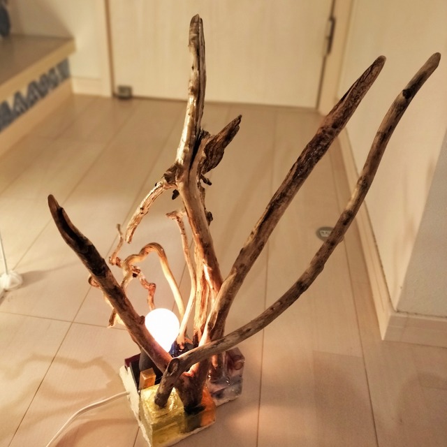 世界で一つだけの流木 世界で一つだけのレジンデザイン それらを組み合わせた 流木インテリア照明として 店舗や事務所のオブジェとして 空間価値を高めます 幅 20センチ 奥行 15センチ 高さ 30センチ LED照明 100Vコンセント 中間スイッチつき 流木は洗浄後、ニス加工済み エポキシレジンと接合 #流木 #driftwood #流木アート #driftwood art #流木インテリア # driftwood interiors #レジンアート #rasinart #店舗ディスプレイ #store display #デザインアート #design art #インテリア照明 #interior lighting #LED #名古屋市 #japan #nagoya city #中村区 #事務所空間 #office space #飲食店空間 #restaurant space #株式会社PATCHWORK 流木レジンアートとLED照明が融合した、オシャレで幻想的な一品。自然の持つ美しさを生かした流木の上に透明な樹脂を流し込み、独自のアートを作り上げました。光が通り抜けるレジンの中に埋め込まれたLED照明が、絶妙な光の演出を生み出します。夜になると部屋に幻想的なアンビエントライトを演出し、心地よい癒しの空間を作り出せます。流木の経年変化や自然の持つ風合いを楽しむことができるだけでなく、インテリアとしても映える一品です。 この商品は限定生産のため、一点一点異なるデザインがあります。大自然の一部を手に入れ、癒される特別なひとときを過ごしてください。