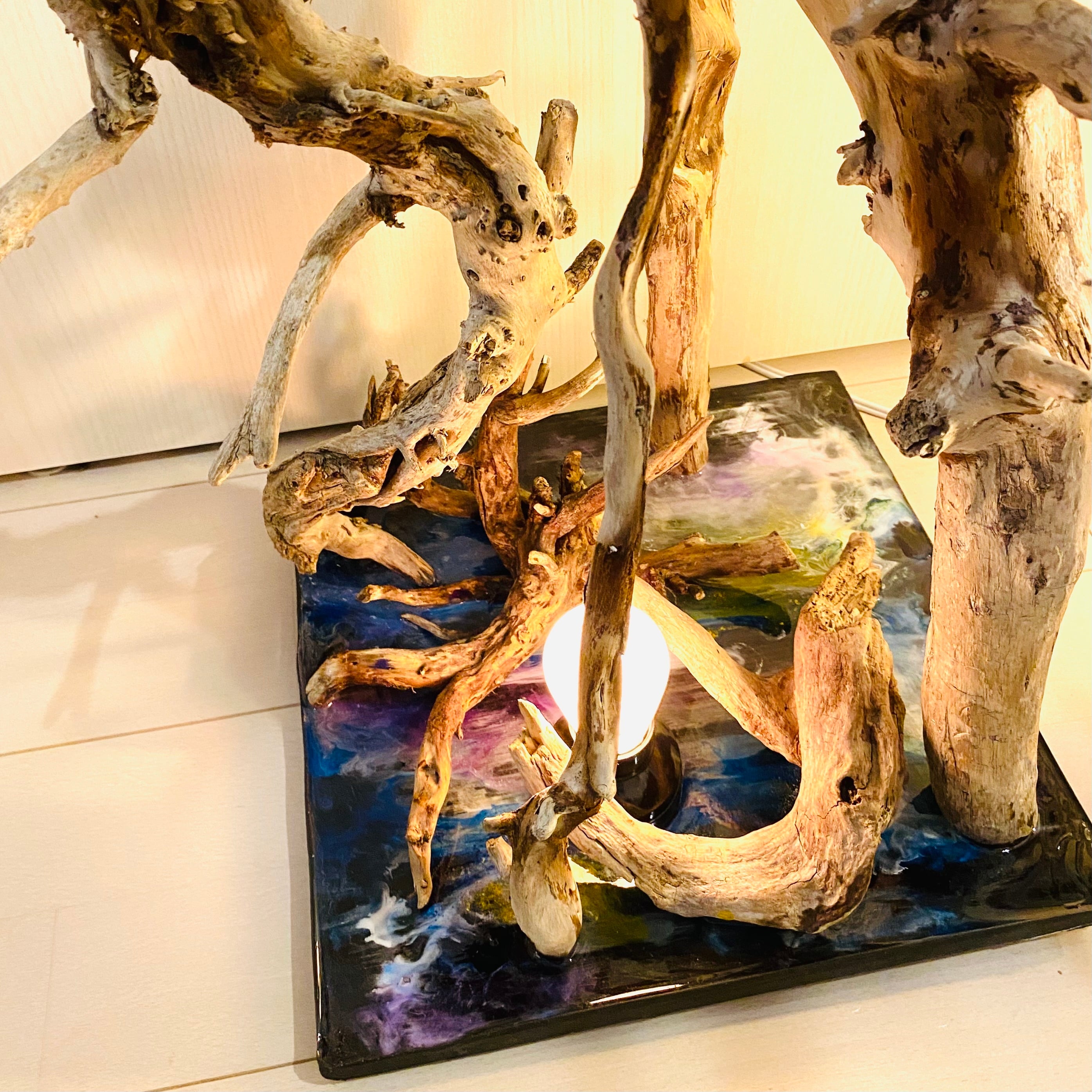 世界一つだけの流木 世界で一つだけのレジンデザイン それらを組み合わせた インテリア照明 店舗や事務所のオブジェとして 空間価値を高めます 幅 約15センチ 奥行 約15センチ 高さ 約30センチ LED照明 100Vコンセント 中間スイッチつき 流木は洗浄後、二次加工済み エポキシレジンと接合 #流木 #driftwood #流木アート #driftwood art #流木インテリア## #driftwood interiors #レジンアート #rasin art #店舗ディスプレイ #store display #デザインアート #design art #インテリア照明 #interior lighting #LED #名古屋市 #japan #nagoya city #中村区 #事務所空間 #office space #飲食店空間 #restaurant space #株式会社PATCHWORK