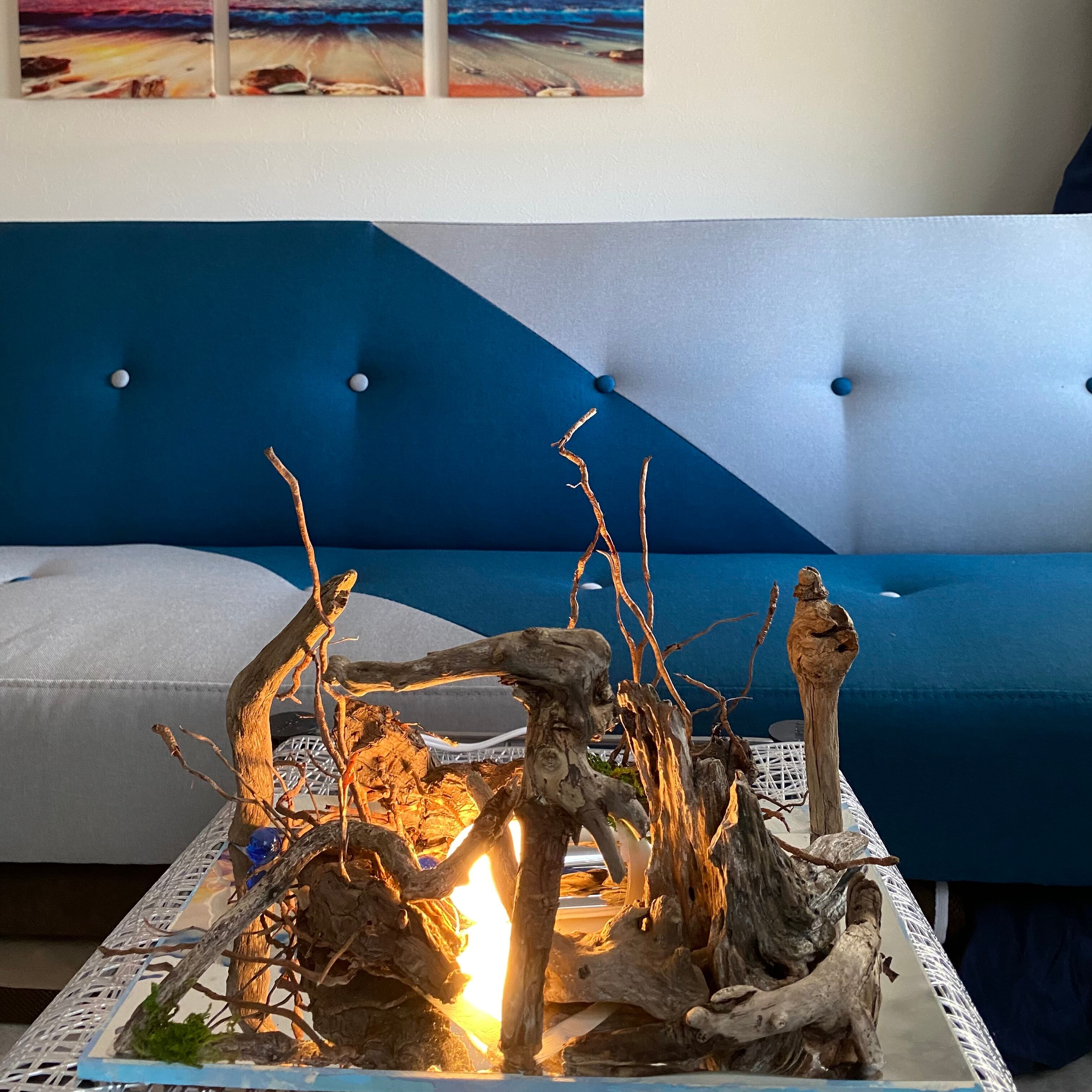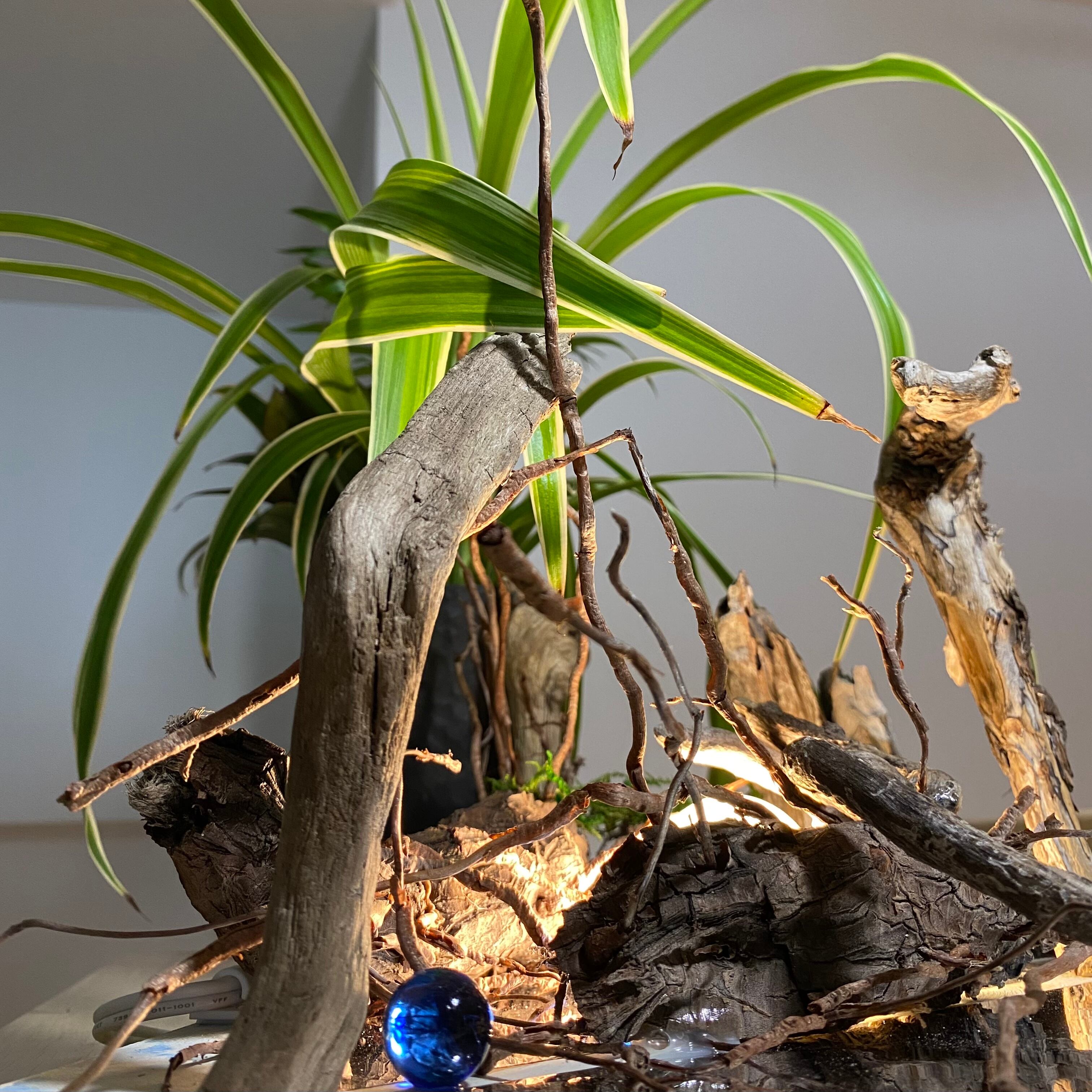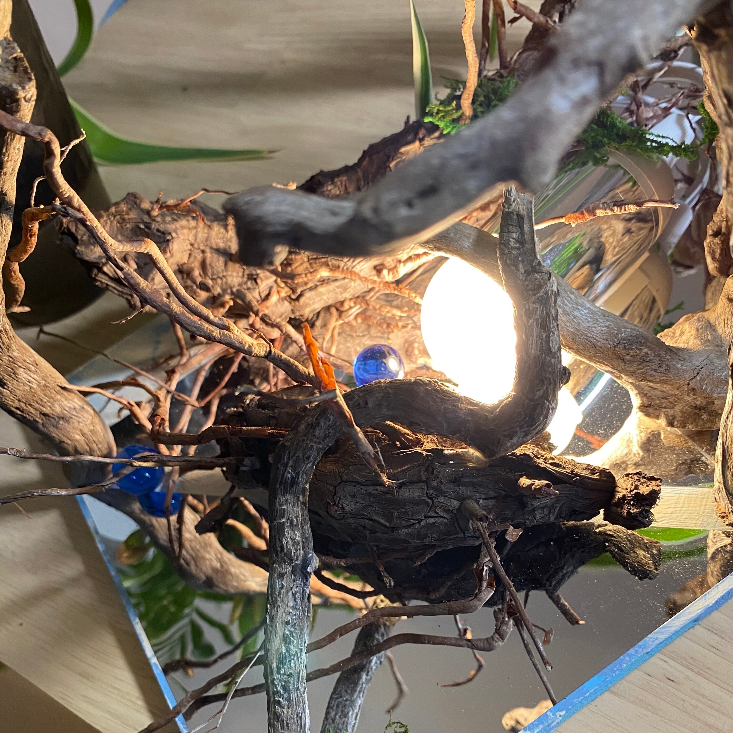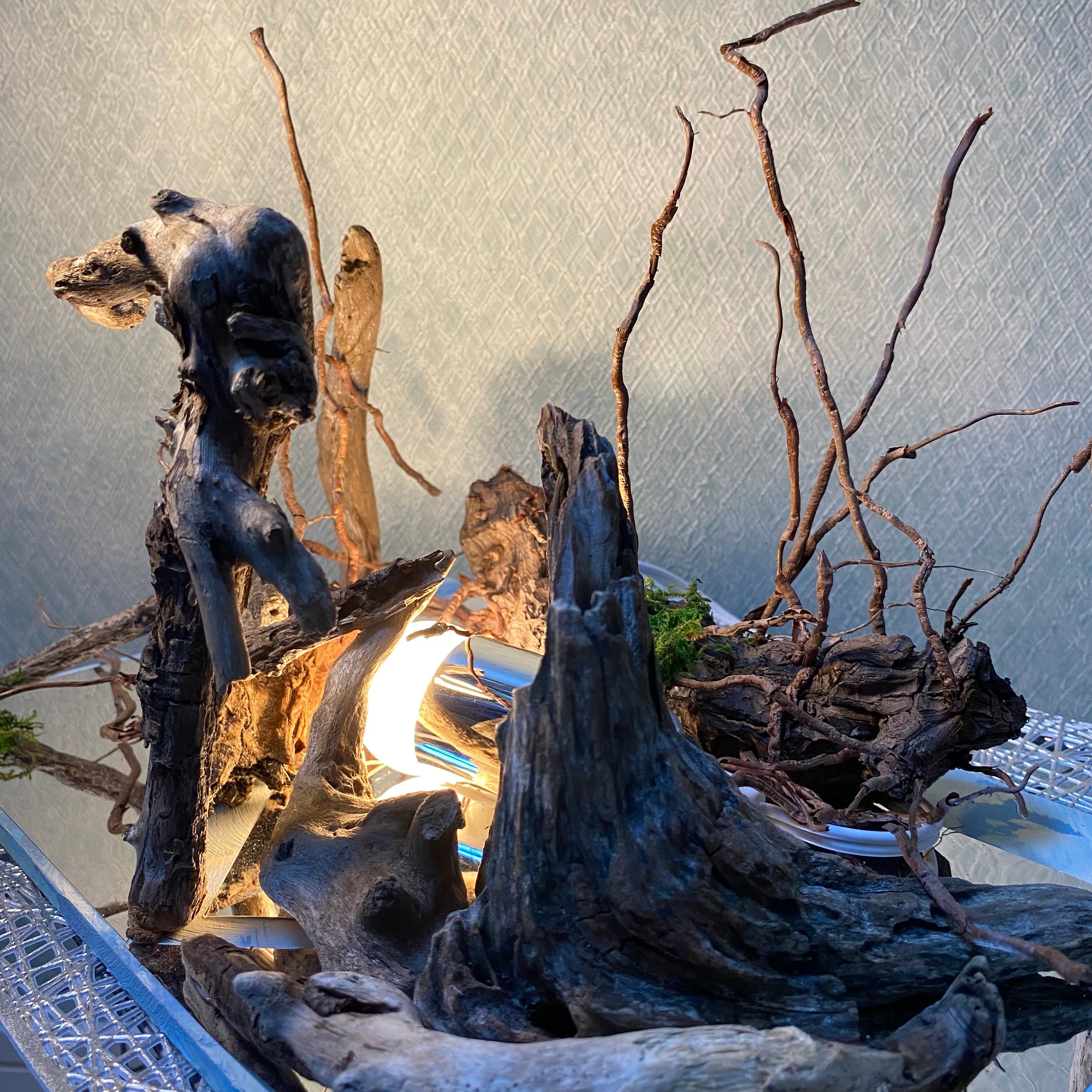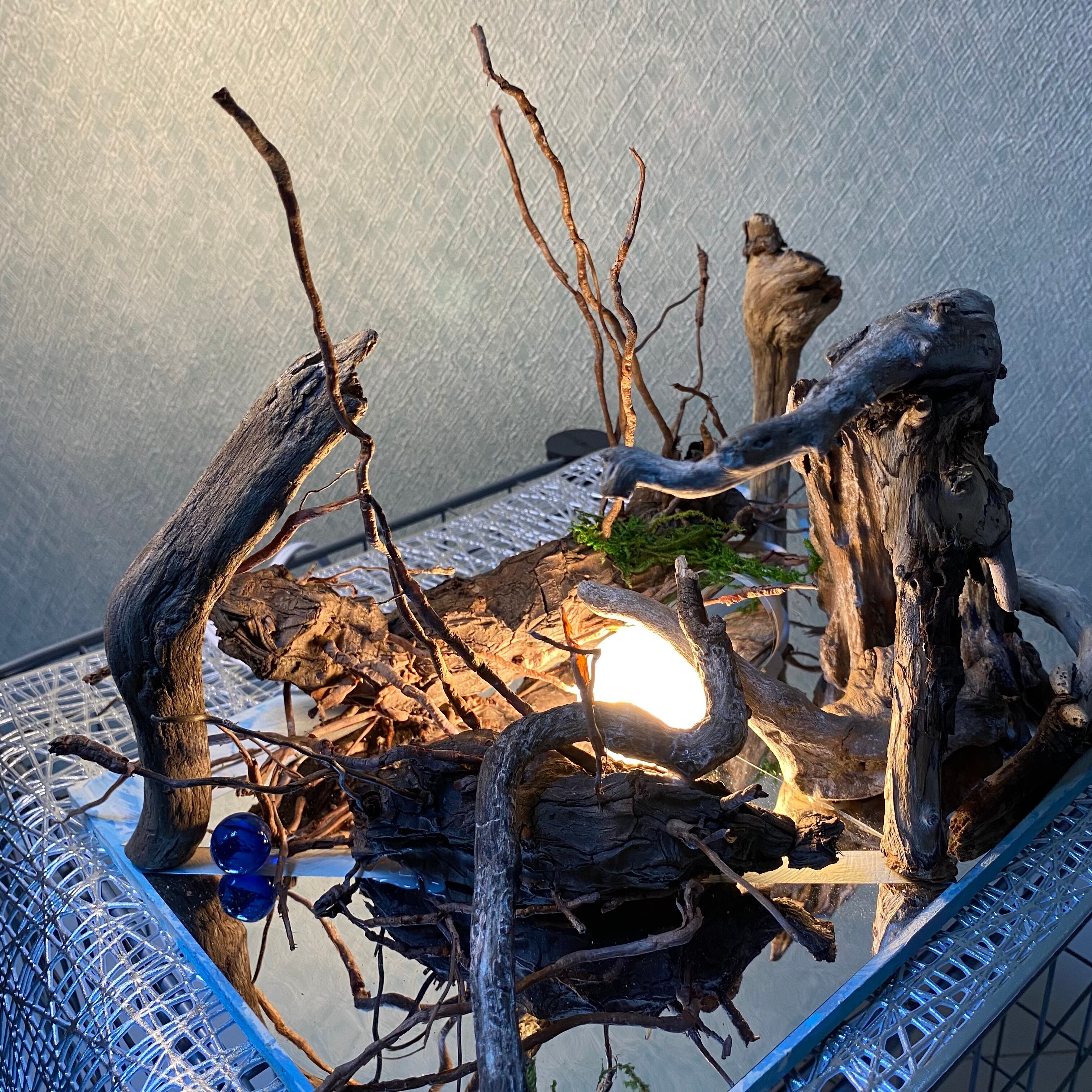 小さな箱庭の中の光と流木の世界観を眺めてゆったりと癒されてください