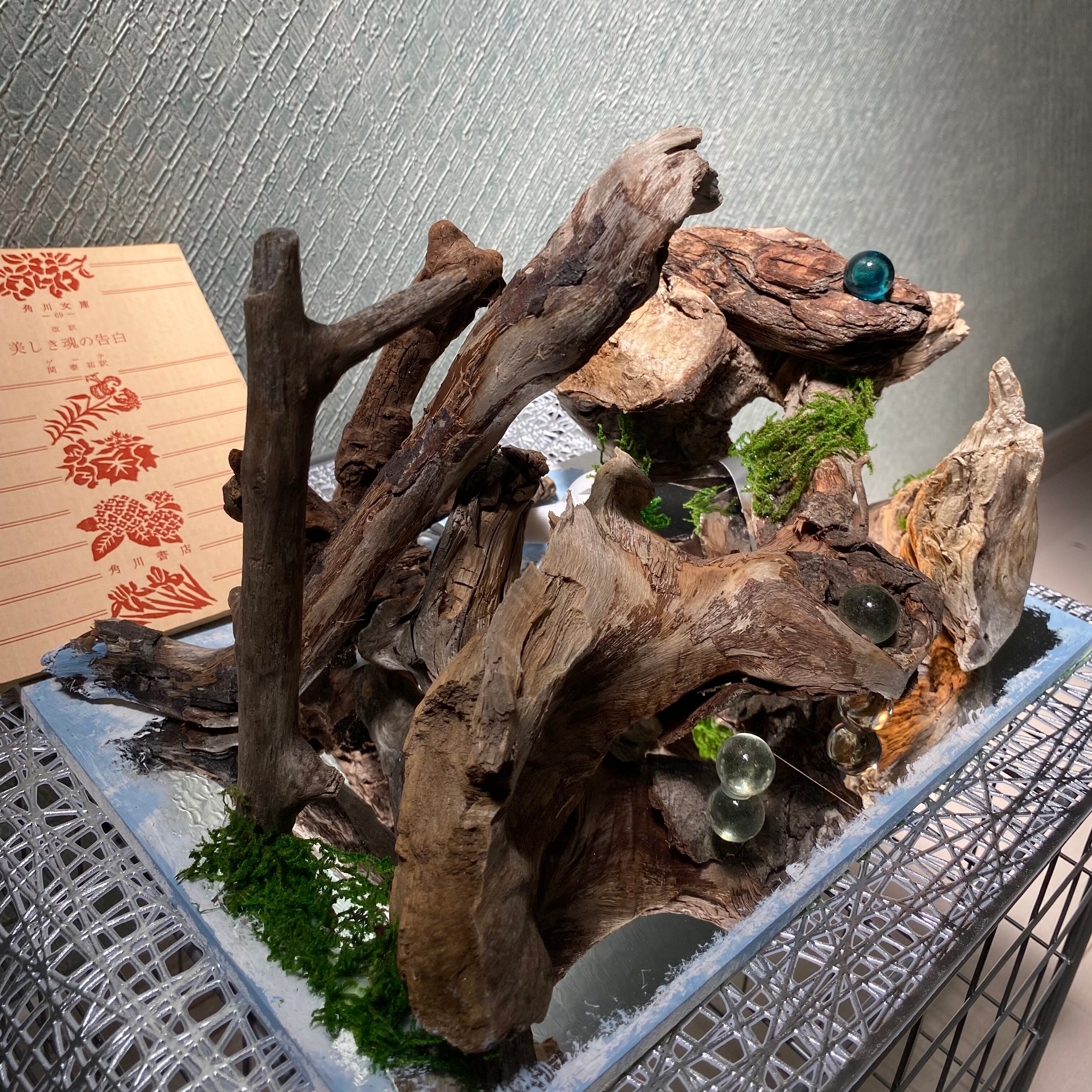 小さな箱庭の中の光と流木の世界観を眺めてゆったりと癒されてください