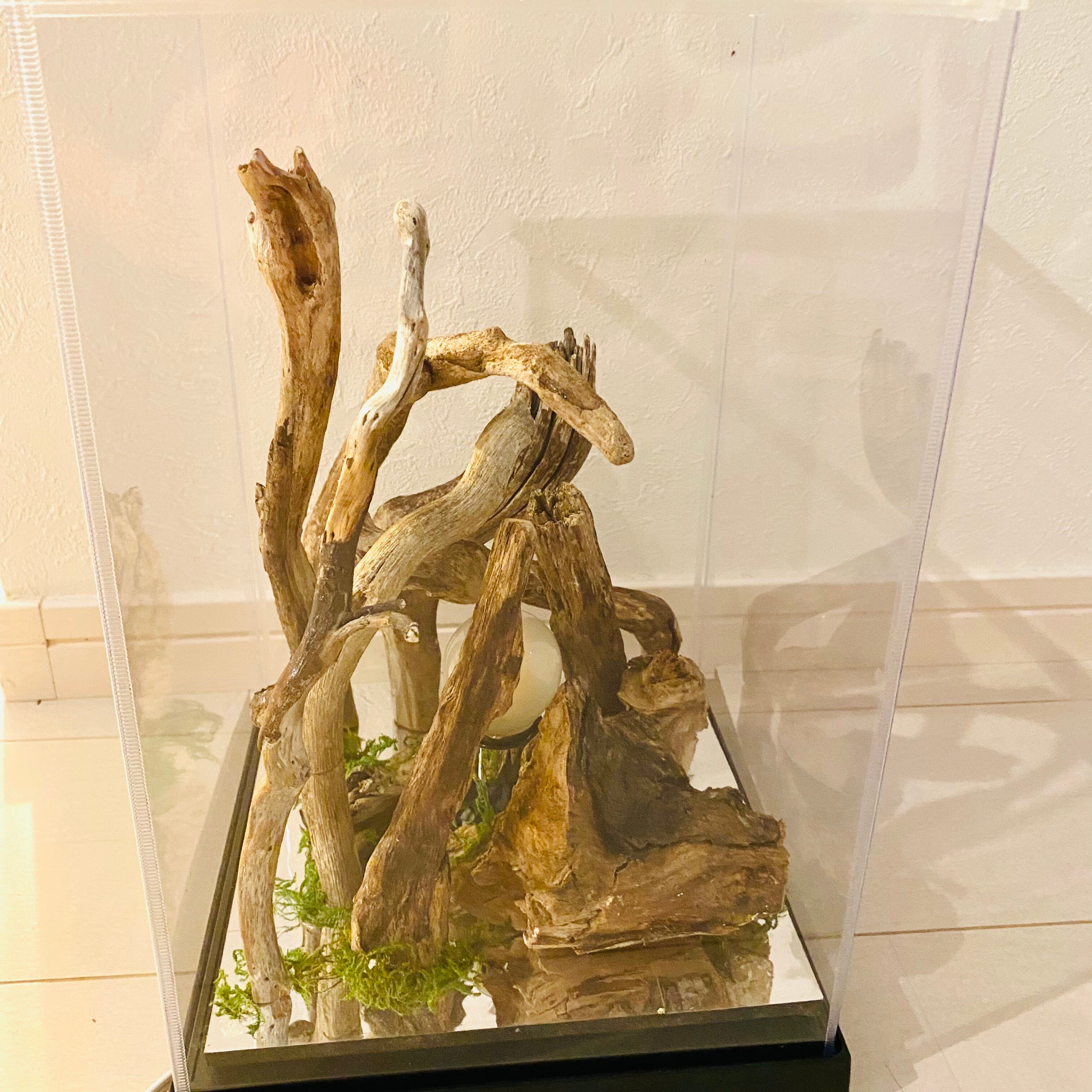 小さな箱庭の中の光と流木の世界観を眺めてゆったりと癒されてください