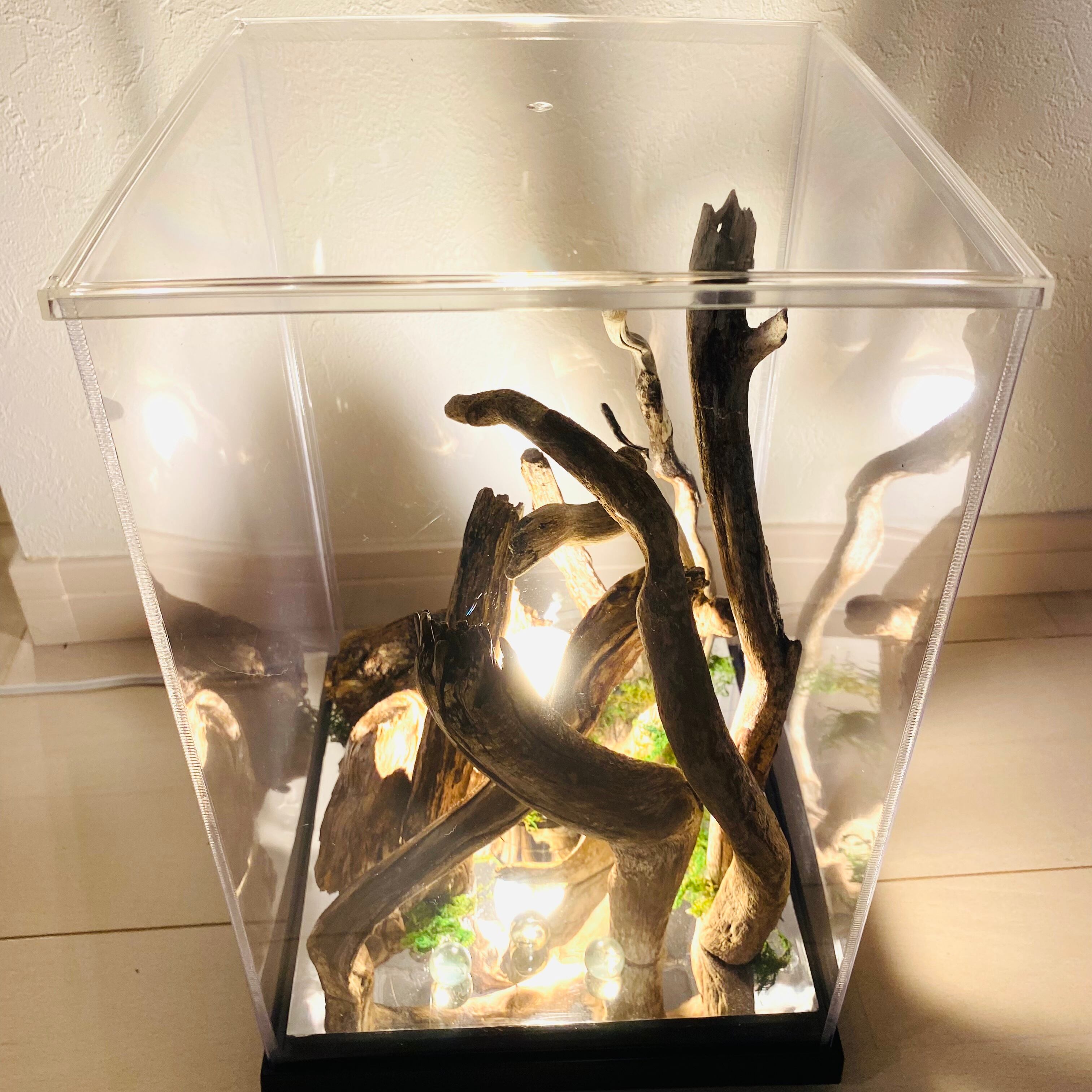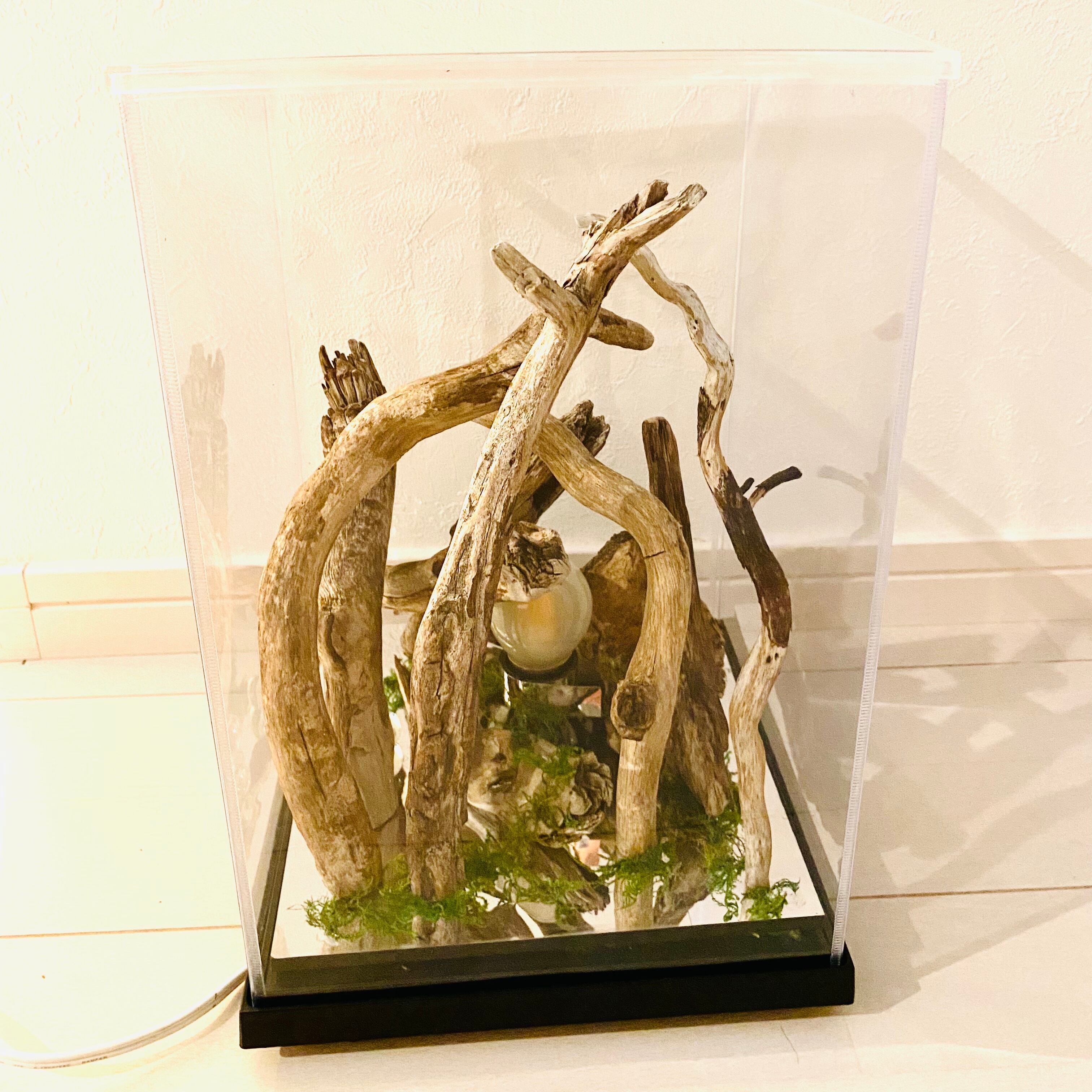 楡の木陰の欲望 LED照明 流木アート インテリア プラスチックBOX P01