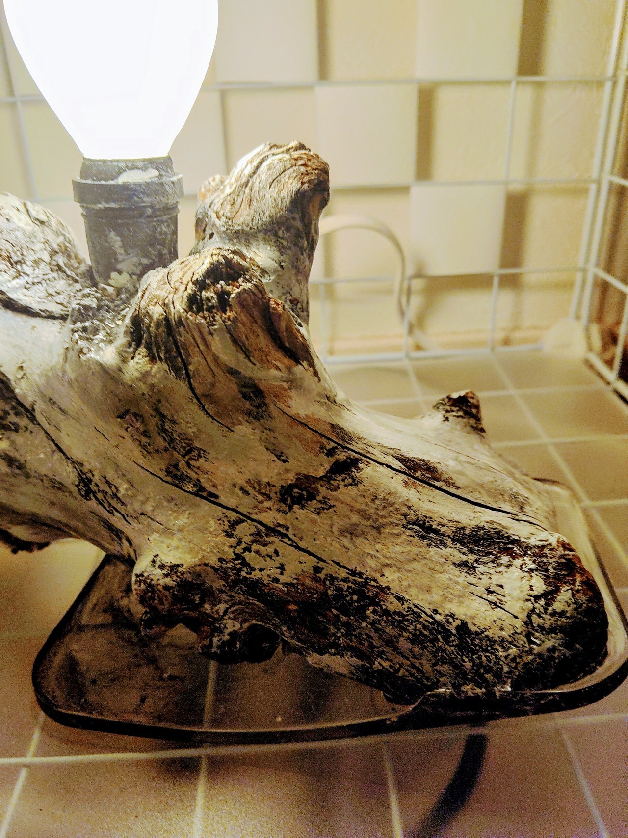 この作品は、職人が一つ一つ手作りで丹念に作り上げました。流木を厳選し、その自然の美しさを最大限に生かすように作られています。LED照明は省エネ設計で、長時間点灯しても安心してお使いいただけます。